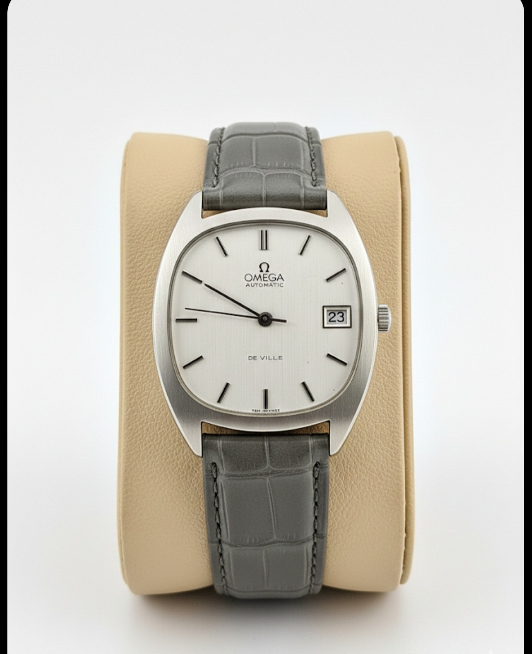 Vends magnifique montre de luxe Omega De Ville vintage, année de fabrication circa 1971 1973.(référence 162.7045). Ce modèle se distingue par son boîtier « tonneau » élégant et sa fabrication rare en or gris massif 18 carats. Une pièce d’une grande finesse, alliant sobriété et prestige.